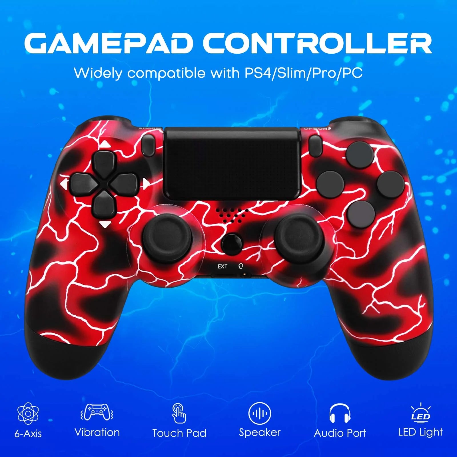 Wireless controller for PS4 with 6-Axis Gyroscope&Dual Vibration &Clickable Touch Pad :The highly sensitive 6-Axis gyroscope supports direction control, shooting aim and character input; the dual vibration gives you the authentic attack and shooting experiences and the clickable touch pad supports click and touch functions to meet your needs.